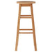 The four legs of this stool are angled upward to support the round seat in the shape of an A-frame. This solid, stable kitchen bar necessary is made more comfortable by the addition of horizontal footrests. Its pale, golden colour makes it the perfect complement for other natural wood home decor. a lovely and organic addition to the kitchen area bar.