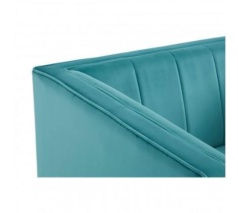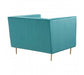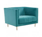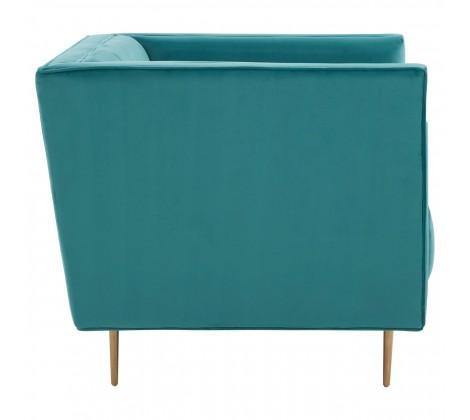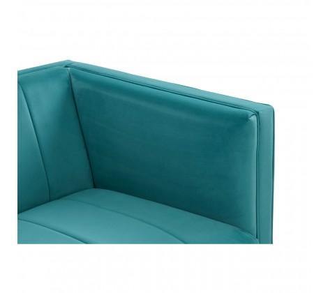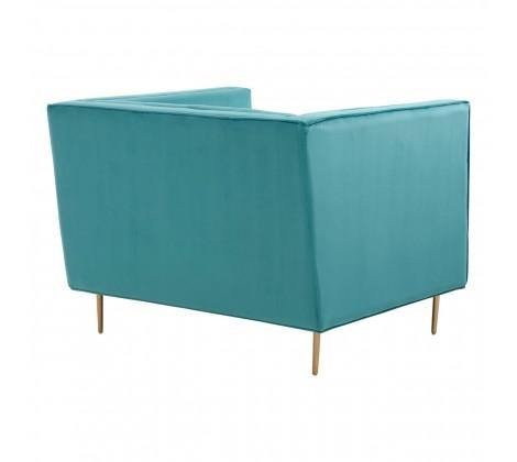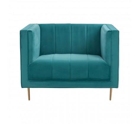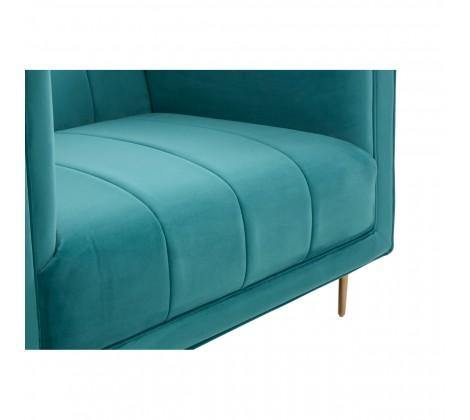 Upholstered in plush teal velvet, this armchair comes in thick padding featuring minimal channel detail. The warm metallic stainless steel base furthers the luxe accent and harmonises with vertical lines along with the seat and backrest.