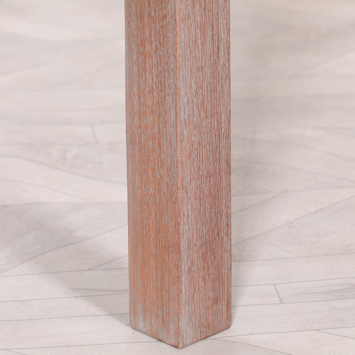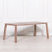Outdoor 180cm rectangular garden dining table crafted from grade A teak wood in a light rustic finish with a slatted surface and tapered legs.