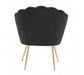 With a decorative seashell shaped back and luxe base, this accent chair will style well with boutique hotel interiors. Upholstered in black velvet, this chair has a vintage inspired scalloped back with a rounded seat in plush cushioning. Gold finish angular legs harmonise with the luxe velvet to create a bold statement.