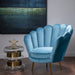 Style this glamorous chair with barrel back and brass finish slanting legs with Art Deco décor. Upholstered in blue velvet, this chair has clamp shell design backrest with artful edges. Vertical tufting gives the chair texture while thick padding with a spring coil system contributes to premium comfort.