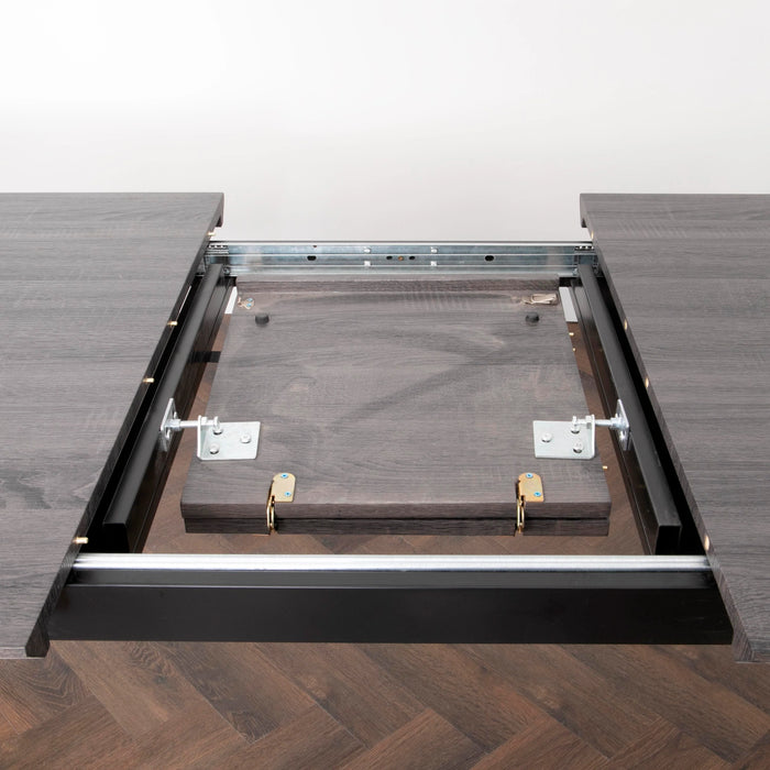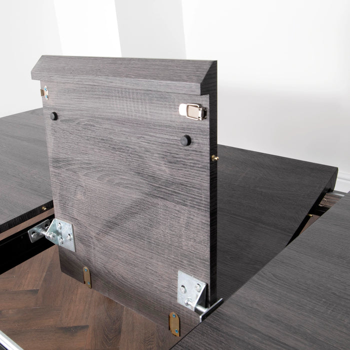 The Oxford table has tapered legs and a wood grain top, it's surface is a gorgeous mid grey and can easily be extended. Seating up to 6 people, it will be a perfect dining table for a family home.