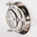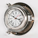 Nautical cabin ship style wall clock crafted from polished aluminium with a glass front.