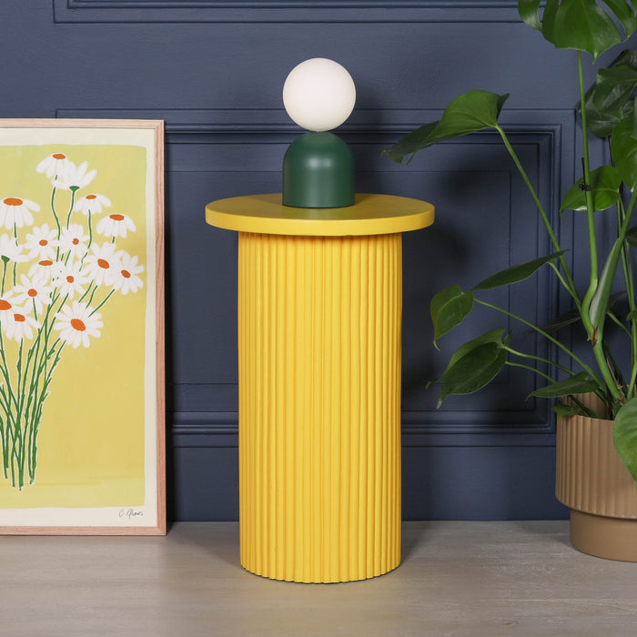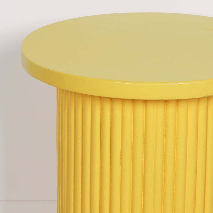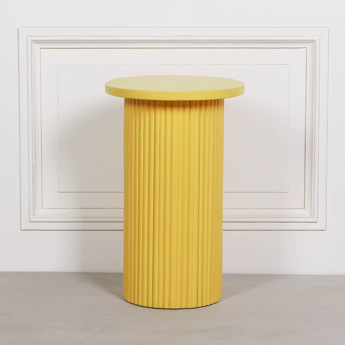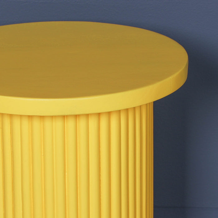 Yellow painted wooden ribbed occasional side table made from mango wood