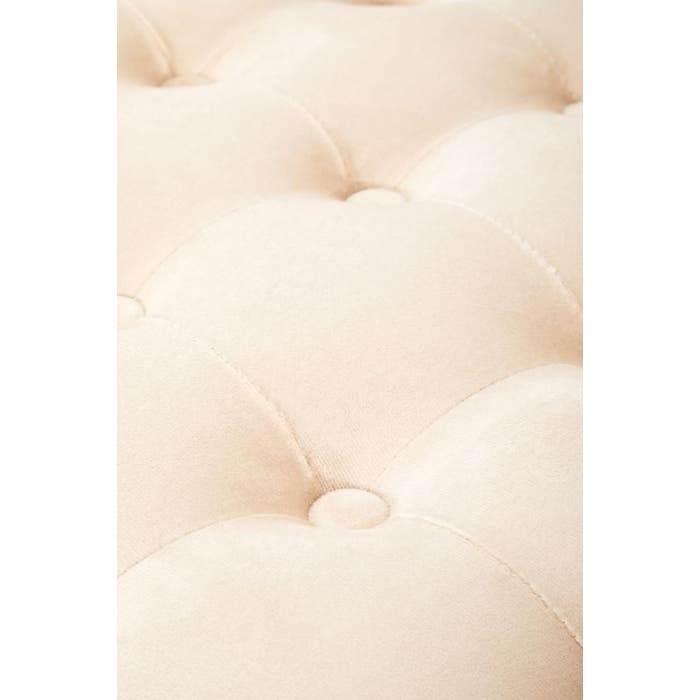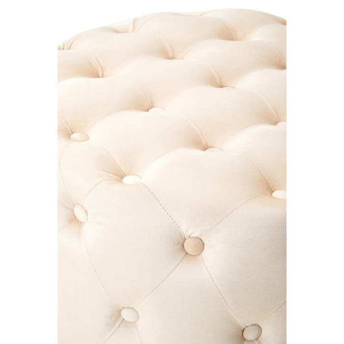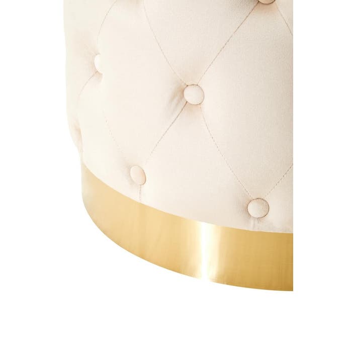 Indulge in the lavishness of this stool, boasting button tufted plush velvet upholstery that exudes luxury. The sleek matte gold finish metal base perfectly complements the stone velvet, elevating this stool into a truly opulent accent piece suitable for the most exclusive of decors.