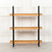 Three tier open bookcase shelving crafted with pine wood and metal to create a rustic wood industrial design. Requires Assembly