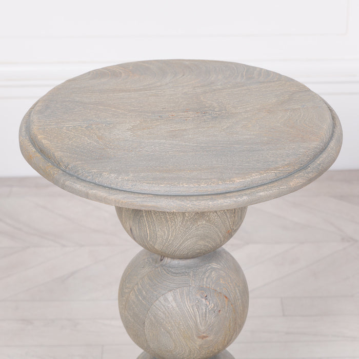 Rustic Wooden occasional side table with ball shaped column made from rustic mango wood