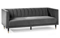 The Salma Scalloped Back 3 Seater is a stylish and compact sofa tailored in fluted back velvet, with brass tip legs. The clean and slick design make for a comfortable sofa that is the focal point of any living space. Available in teal or grey.