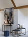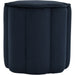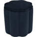 Scallop edged footstool upholstered in sumptuous blue velvet and finished with matching piping and button. Perfect for bedrooms, bathrooms or living rooms and can be used as a side table or footstool. Taupe colour also available.