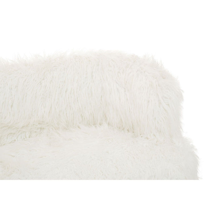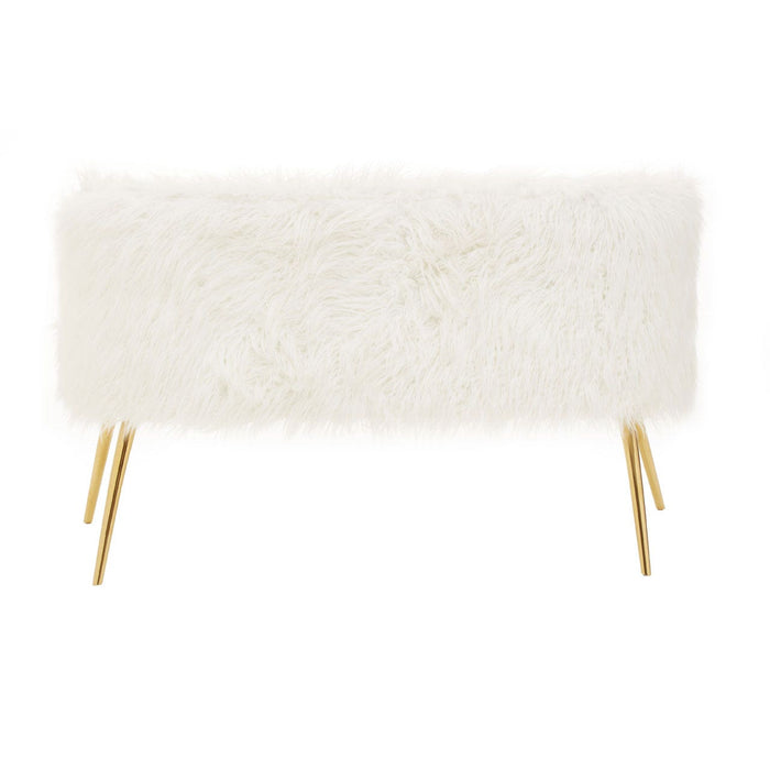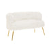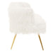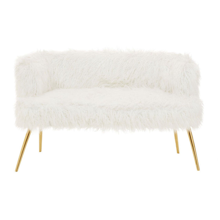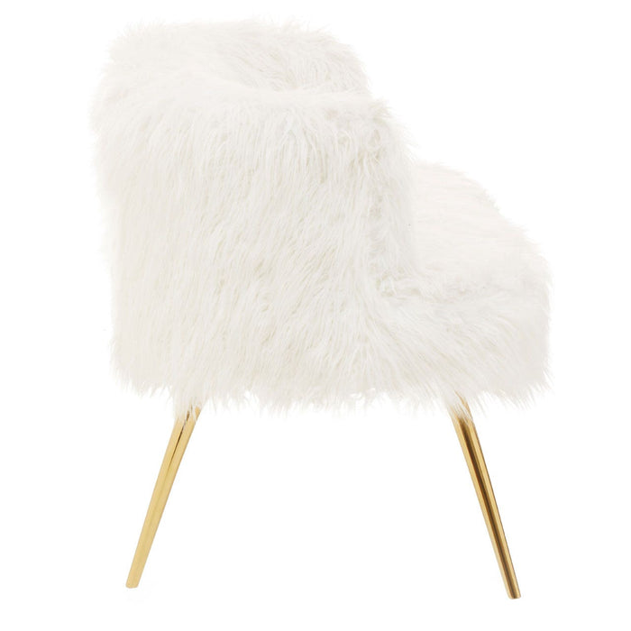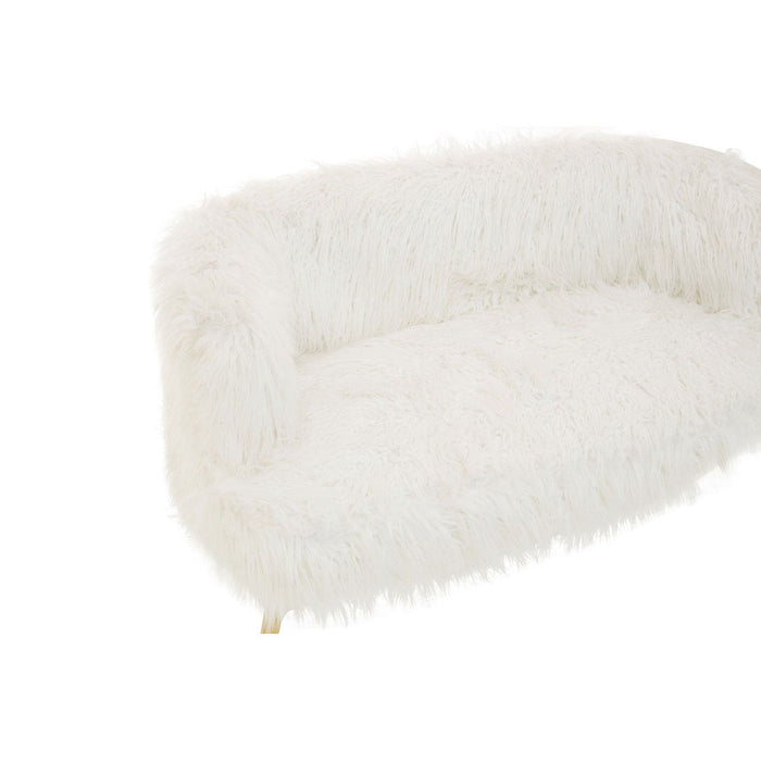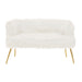 Warm metallic accents and minimal design lines add a contemporary aesthetic to the Sienna sofa. Upholstered in soft faux fur, the sofa's backrest and seat have an opulent feel, lending it to luxe style interiors. The simplistic seat is raised from the ground by slender, slightly tapered legs. The four legs are created from robust metal and feature a stylish gold finish, contrasting with the crisp white seat and enhancing the tables luxurious appeal.