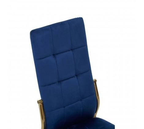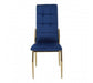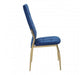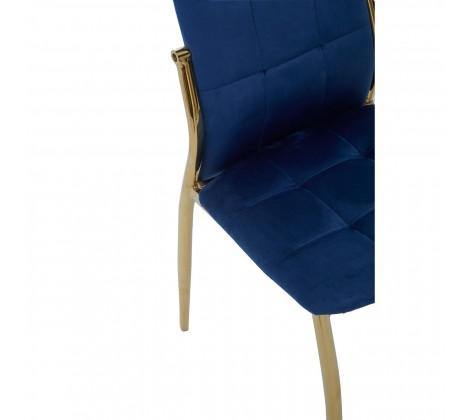 Luxurious blue velvet and warm, golden finish frame ensure this dining chair is a classic, but contemporary piece.