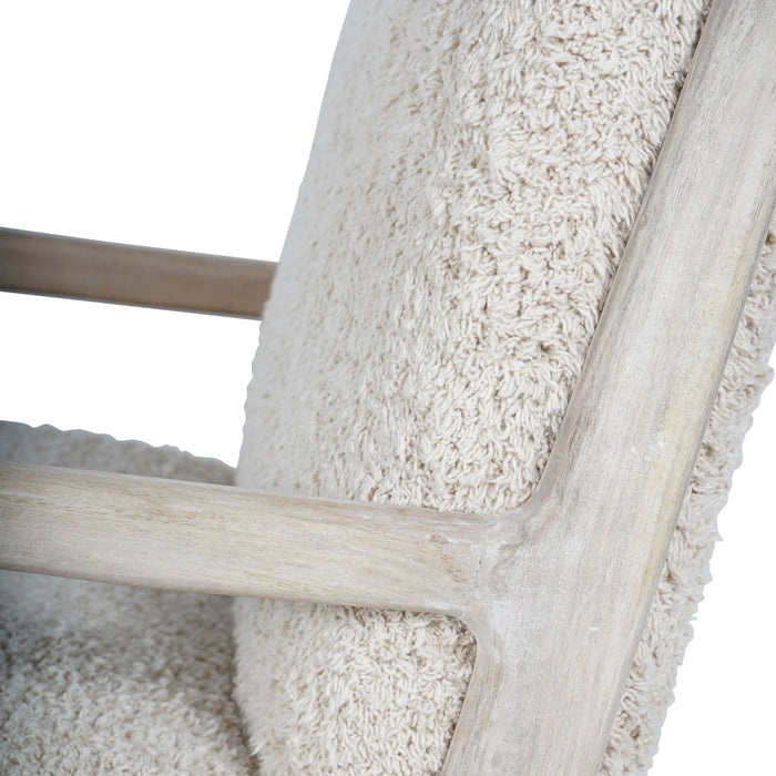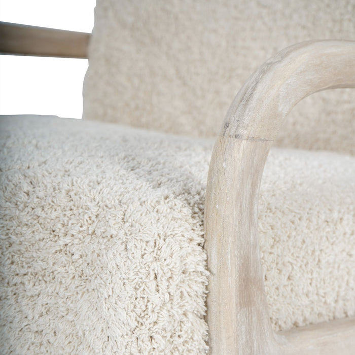Elegant Upholstered Occasional Chair, featuring plush teddy cotton fabric that exudes comfort and relaxation. With a whitewashed solid wooden frame, this chair offers a calming and serene addition to your living space. Embrace tranquillity and elegance with this perfect accent piece for your interior.
