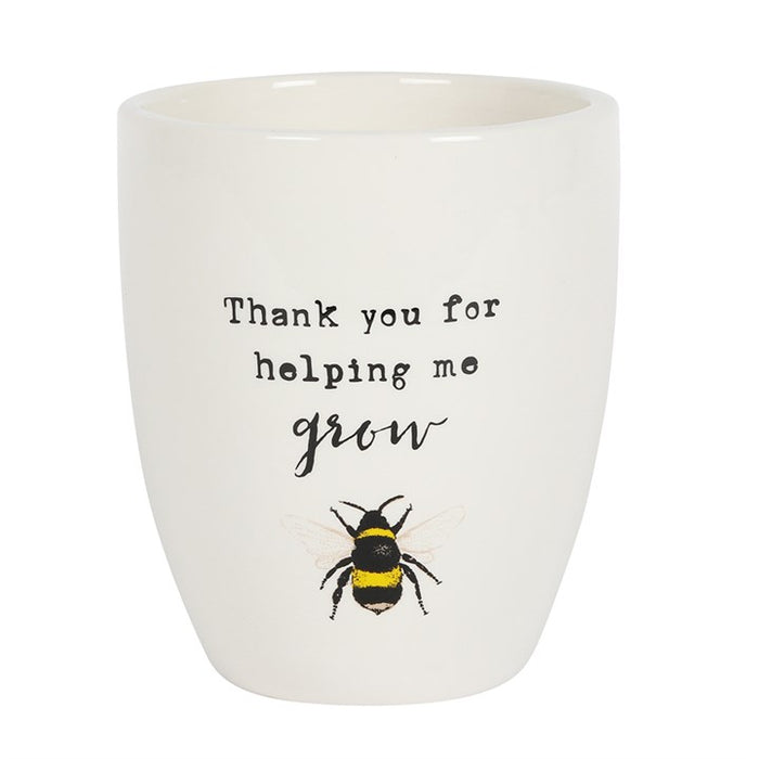 This ceramic plant pot is sure to bring a smile to someone's face with its cute bee illustration and sweet 'Thank you for helping me grow' text. Makes a lovely teacher gift or a thoughtful pick-me-up for someone special.