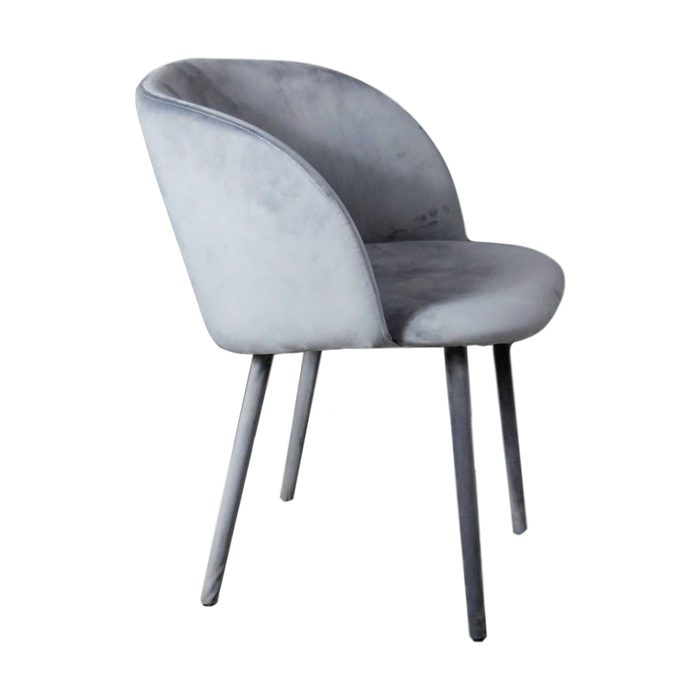 This impressive dining chair is covered from top to bottom with a sumptuous soft grey velvet for a slick approach to modern dining chairs. The curved back, hugs the contours of the body for a comfortable sit and brings a contemporary touch to your kitchen, office or restaurant.