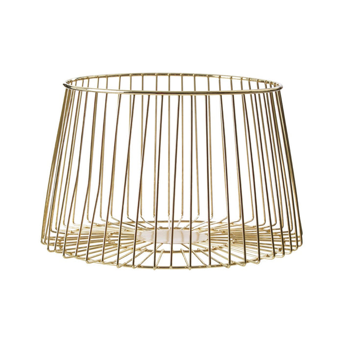 Formed from slim metal wires, this large accent fruit basket features style and sophistication in its tapered design. The Vertex Deco large gold finish fruit basket is a contemporary addition for the kitchen and can make a chic display when placed on the centre table. The openwork ensures air circulation and keeps stored contents fresh.