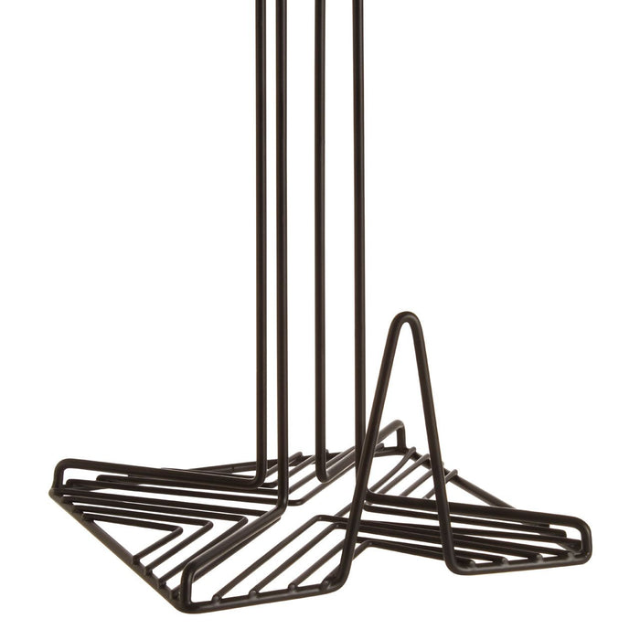 This kitchen roll holder has an effortless and simplistic open wireframe design. This roll holder in open wireframe is a practical addition to the kitchen. Finished in a black powder coating, this kitchen roll holder features sleek iron rods which intersect each other at the base, creating an attractive geometric design. A practical addition to the kitchen countertop, the holder makes it easy to tear kitchen roll.