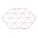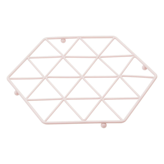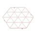 Ensure kitchen worktops are protected from hot pans with the polygonal Vertex trivet. Forming the shape of a hexagon, the strong iron wire frame features a warm pink plated finish that coordinates well with the Vertex utensil holder. Its series of triangular shapes combine to form a pleasing geometric pattern. Four small feet keep it slightly raised from kitchen surfaces, allowing air to circulate under the pot or pan.