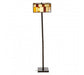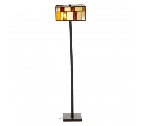 With its intricate glasswork, the floor lamp features a multicoloured shade encased in the rustic bronze finish frame. The lamp has a square base which coordinates with clean lines of the minimal shade.