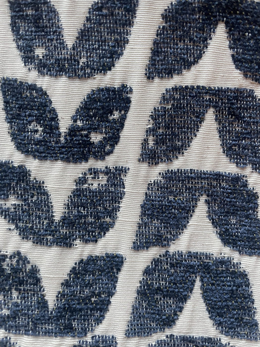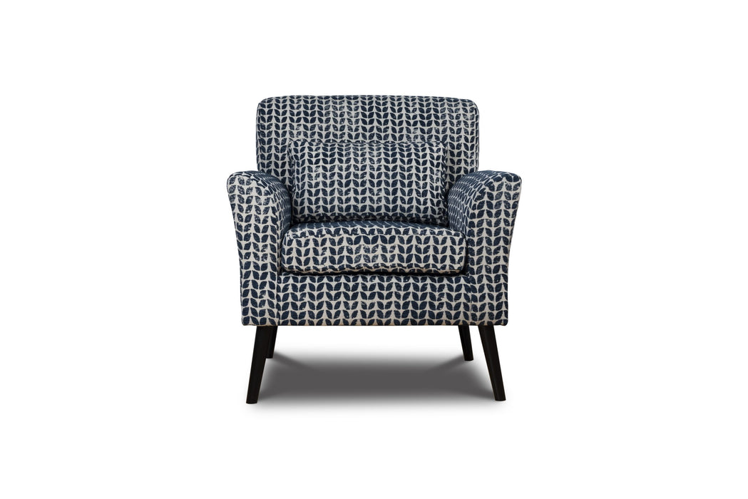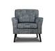 Warnborough club chair in blue patterned fabric, birch frame, legs painted black, cushion, polyurethane foam & hollow blown fibre filling. Made in the UK.