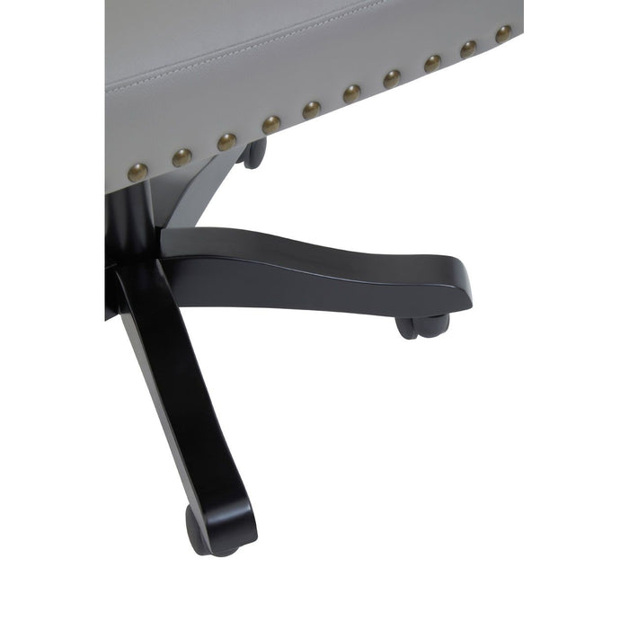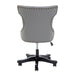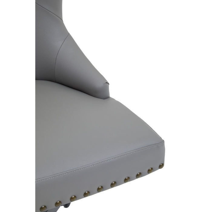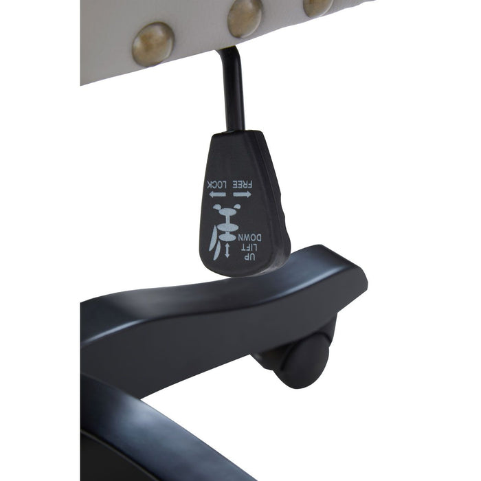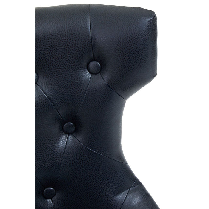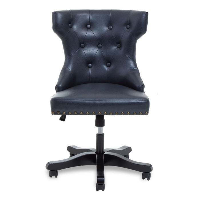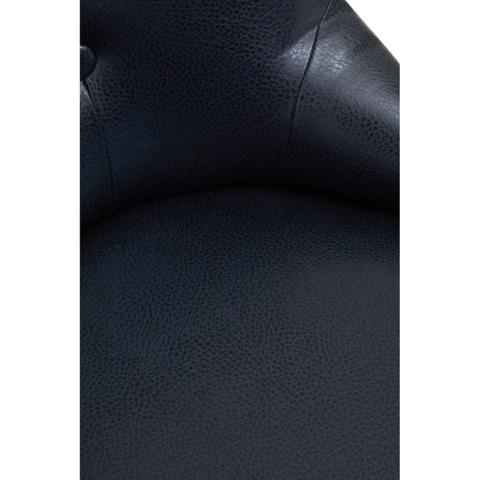 The Watson chair exhibits a mix of modern and vintage charm to an array of decors. This chair features a leather effect padded seat with diamond pattern tufted back and studded detail trim at the front. Height adjustable with swivel action, the five-claw wooden base of this chair with castors ensures swift mobility and stability.