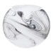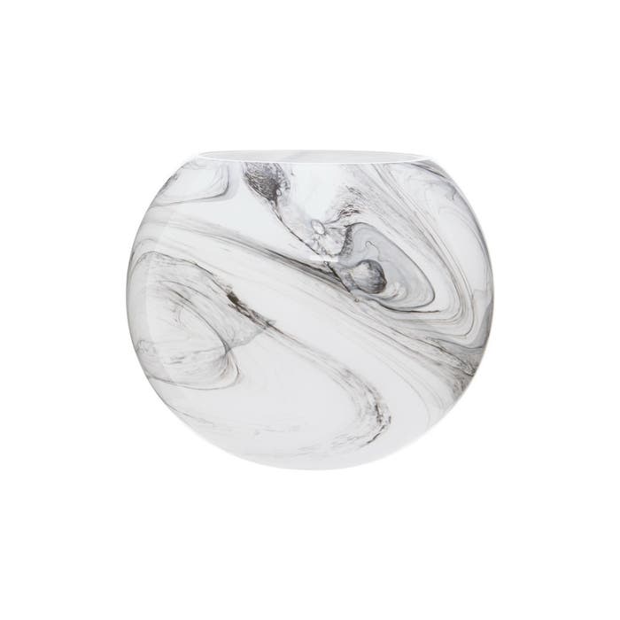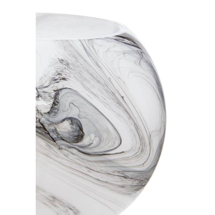 Expertly handcrafted from glass, this round glass vase features a polished finish and stunning marble effect. The elegant grey and white tones, with intricate veining reminiscent of natural marble, add a captivating element to this decorative piece.