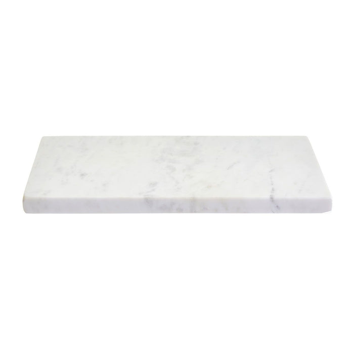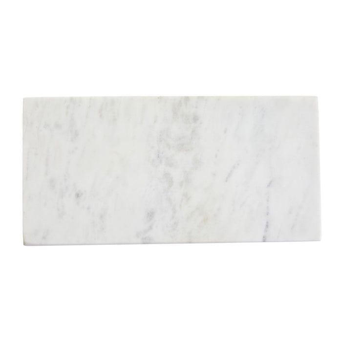 A Sleek white marble rectangle chopping board. This white marble chopping board is both aesthetic and functional, gone are the days of having to hide your chopping boards away between uses.