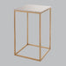 The Yarrow Side Table features an openwork gold boxed frame and is topped with white marble. Ideal for living rooms or hallways.